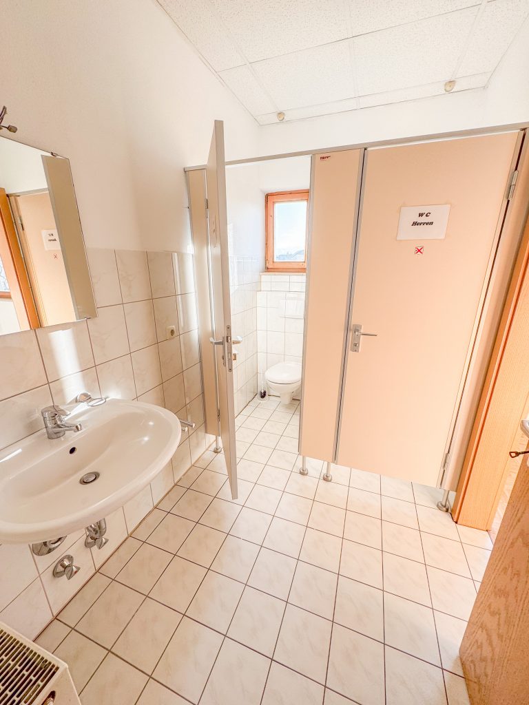 Zwei WC-Einheiten sorgen für zusätzlichen Komfort für Mitarbeiter und Kunden. Ein zugehöriger Kellerraum bietet praktische Lager- und Abstellmöglichkeiten.