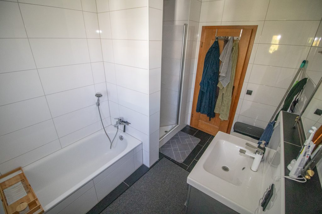 Die separate Küche bietet ausreichend Platz zum Kochen und ist zusätzlich mit einem praktischen Abstellraum ausgestattet. Das Badezimmer verfügt sowohl über eine Dusche als auch eine Badewanne und bietet damit Komfort für jeden Anspruch.