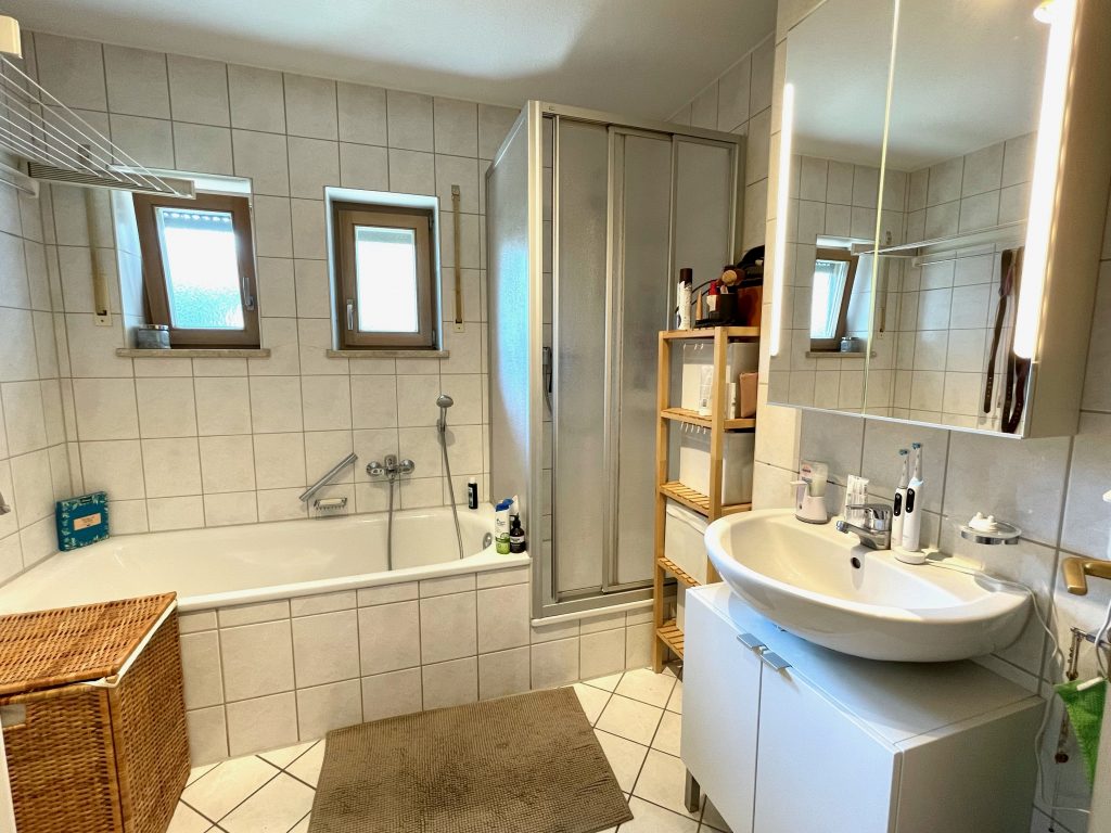 Diese gepflegte 3-Zimmer-Wohnung im Erdgeschoss befindet sich in einem Haus in Hanglage, wodurch sich trotz Erdgeschosslage ein schöner Ausblick ergibt. Das helle Wohnzimmer bietet Zugang zu einem Balkon, der zum Verweilen im Freien einlädt. Die Küche ist separat vom Wohnbereich und bietet ausreichend Platz zum Kochen. Ein kleiner Abstellraum sorgt für zusätzlichen Stauraum. Das Badezimmer ist mit sowohl einer Badewanne als auch einer Dusche ausgestattet und bietet damit Komfort für den Alltag.