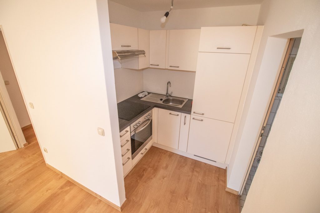 Die vorhandene Küche ist funktional ausgestattet und kann bei Bedarf vom Vormieter abgelöst werden.