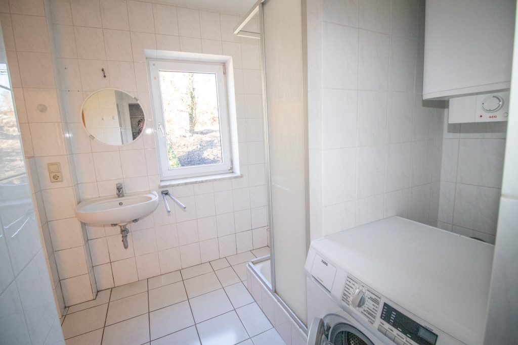 Im Erdgeschoss befindet sich die Wohnküche mit ausreichend Platz zum Kochen und Verweilen. Über eine Treppe gelangen Sie in das 1. Obergeschoss, in dem sich das Schlafzimmer sowie das Badezimmer befinden. Das Bad ist mit einer Dusche ausgestattet und verfügt über einen Anschluss für eine Waschmaschine.