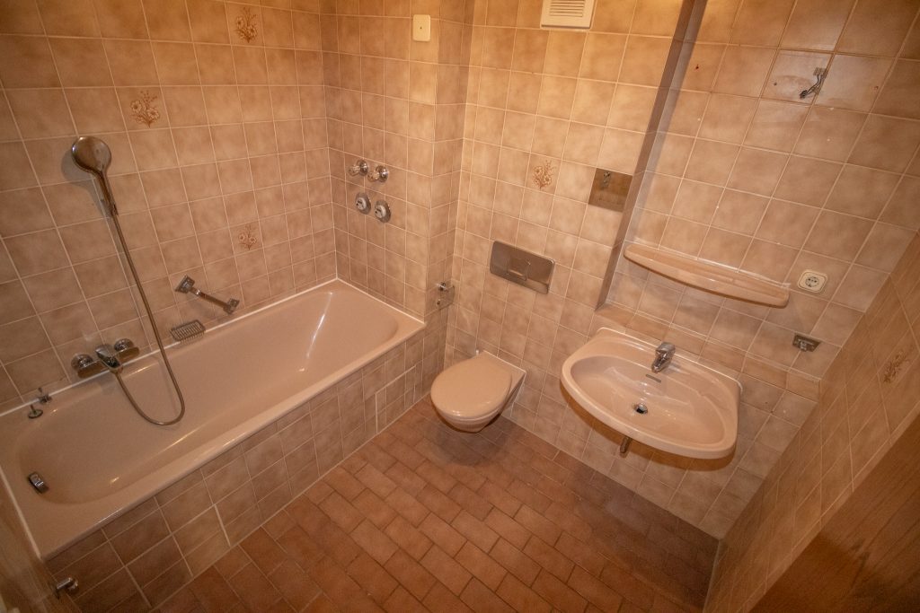 Ein separates Schlafzimmer schafft Rückzugsort und Privatsphäre. Das Badezimmer ist mit einer Badewanne ausgestattet – ideal zum Entspannen nach einem langen Tag.