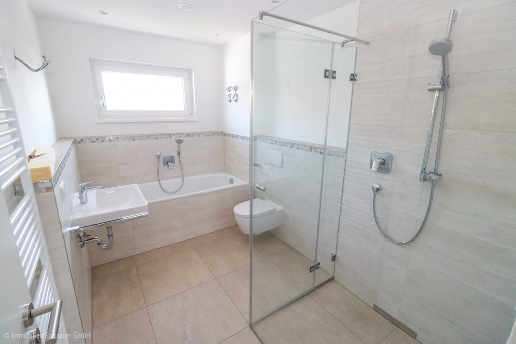 Modernes Tageslichtbad mit Dusche und Badewanne